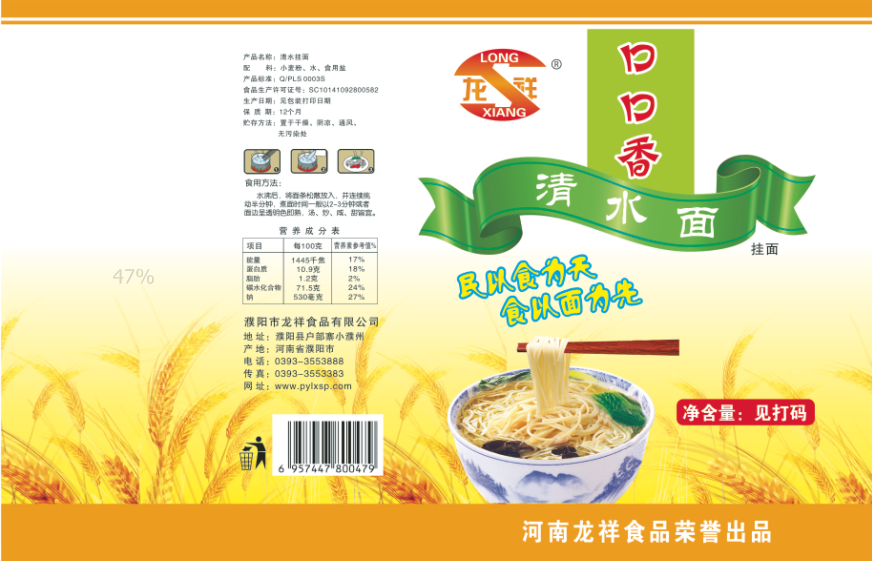 濮陽(yáng)市龍祥食品有限公司位于河南省濮陽(yáng)縣戶部寨鎮(zhèn)小濮州,始建于1994年,前期投資200萬(wàn)元,經(jīng)過(guò)幾年的努力,大力開(kāi)發(fā)市場(chǎng),由于市場(chǎng)的需求量急劇上升,出現(xiàn)供不應(yīng)求,于2004年擴(kuò)建,建成一座新型的現(xiàn)代化面粉加工企業(yè),并擁有全國(guó)先進(jìn)全自動(dòng)生產(chǎn)設(shè)備一套,產(chǎn)量由以前的100噸/天,提高到現(xiàn)在400噸/天。 2012年再次擴(kuò)大規(guī)模申請(qǐng)為濮陽(yáng)市龍祥食品有限公司,注冊(cè)資金500萬(wàn)元。2012年又投資800萬(wàn)元新建掛面生產(chǎn)線一條,日產(chǎn)掛面50噸。龍祥食品有限公司現(xiàn)有職工120余人,總工程師1人,專業(yè)技術(shù)人員10人,經(jīng)濟(jì)師1人,會(huì)計(jì)師1人,銷售人員2人,優(yōu)秀專業(yè)人員20余人。  龍祥公司自創(chuàng)建以來(lái),社會(huì)效益十分可觀。公司一直以“今天的質(zhì)量,明天的市場(chǎng)”為信念,“一切為了客戶需求,竭誠(chéng)追求完美品質(zhì)”為企業(yè)宗旨,走專業(yè)化經(jīng)營(yíng)和職業(yè)化管理的路子。